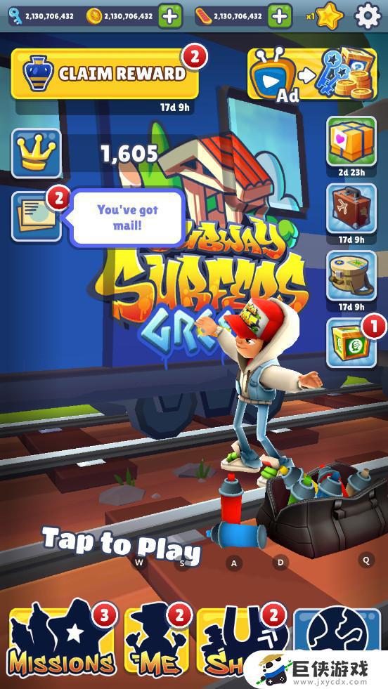 每日通过无尽模式跑图及完成挑战任务,收集足够数量的Q弹小海星,可获得旧金山城市限定角色、滑板、专属自选道具等奖励。